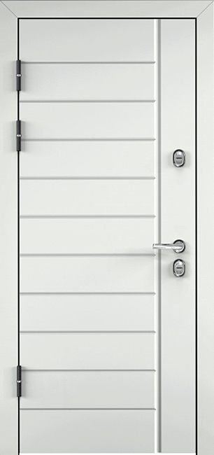 Эта белоснежная входная дверь с линиями №30 станет стильным и надежным элементом для любого интерьера. Благодаря отделке из панелей МДФ с ПВХ-покрытием, дверь выглядит элегантно и обладает высокой устойчивостью к внешним повреждениям. Внешний вид дверного полотна дополнен утонченными линиями, что придает ей современный, лаконичный вид. Прочный каркас из профильных труб 50х25 мм и лист металла толщиной 2 мм обеспечивают отличную защиту и долгий срок службы. Два контура резинового уплотнителя эффективно защищают от шума и холода, создавая комфорт в помещении. Замки Просам и Мосрентген с тремя ригелями гарантируют надежную безопасность. Дополнительно можно заказать зеркала, стеклопакеты и кованые элементы, что делает дверь универсальной для разных дизайнерских решений. Квартирная дверь входная белоснежного цвета с линиями №30 от производителя: быстрое изготовление и монтаж в Истре, индивидуальные размеры, широкий выбор материалов и фурнитуры, официальная гарантия до 10 лет.