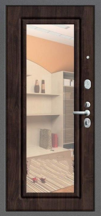 Тёплая входная дверь для частного дома №48 сочетает в себе прочность металлоконструкции и удобство повседневной эксплуатации. Каркас и полотно выполнены из профильной трубы с металлическим листом толщиной 2 мм, что обеспечивает высокий запас надёжности. Двойной контур уплотнителей защищает от сквозняков, а наличие терморазрыва в коробке и полотне помогает удерживать тепло внутри помещения даже в морозы. Внешняя и внутренняя отделка плитами МДФ делает дверь универсальной: материал устойчив к механическим повреждениям, не выгорает и сохраняет аккуратный вид долгие годы. Зеркало на полотне добавляет практичности, экономя место в прихожей и визуально расширяя пространство. Такая модель одинаково хорошо подходит для частного дома, квартиры или офиса, позволяя совместить строгую эстетику с надежной защитой. Теплая входная дверь для частного дома №48 от производителя: быстрое изготовление и монтаж в Истре, индивидуальные размеры, широкий выбор материалов и фурнитуры, официальная гарантия до 10 лет.