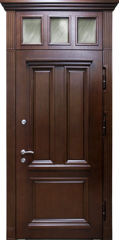 Дверь с сувальдным замком и фрамугой №34 идеально сочетает в себе стиль и надежность. Панель из натурального дерева, использованная как для внешней, так и для внутренней отделки, придает двери благородный и элегантный вид, делая её отличным выбором для помещений с классическим или современным интерьером. Каркас двери выполнен из профильной трубы 50х25 мм и усилен ребрами жесткости, что гарантирует прочность конструкции. Замки от производителей "Просам" и "Мосрентген" с тремя ригелями обеспечивают высокий уровень безопасности. Дверь оснащена уплотнителями с двумя контурами, что гарантирует отличную герметичность, а возможность замены замков и добавления кованых элементов делает её адаптируемой под любые требования. Кроме того, дверь можно дополнить зеркалом, стеклопакетом или видеодомофоном для еще большего комфорта. Входная дверь с сувальдным замком и фрамугой №34 от производителя: быстрое изготовление и монтаж в Истре, индивидуальные размеры, широкий выбор материалов и фурнитуры, официальная гарантия до 10 лет.