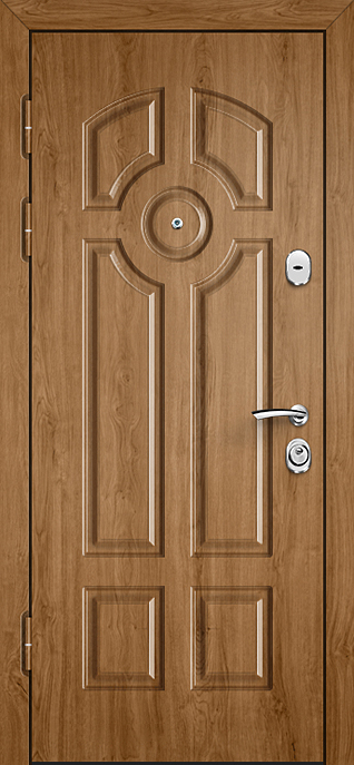 Филёнчатая отделка всегда придаёт дверному полотну особый шарм, создавая эффект глубины и аккуратного рельефа. Входная дверь МДФ с внешней панелью под филёнку №537 универсальна и одинаково хорошо смотрится на фасаде частного дома, в офисе или в квартире. Отделка из МДФ-плиты устойчива к мелким повреждениям, не выгорает и сохраняет аккуратный вид при ежедневной эксплуатации, а при необходимости легко комбинируется с другими декоративными элементами. В основе конструкции — каркас из профильной трубы, лист стали толщиной 2 мм и рёбра жёсткости, обеспечивающие надёжность и жёсткость всей системы. Для удобства и безопасности предусмотрены два замка: сувальдный Просам и цилиндровый Мосрентген. Два контура уплотнения повышают комфорт эксплуатации, а при желании дверь можно дополнить зеркалом, стеклопакетом или коваными вставками, сделав её не только прочной, но и выразительной частью интерьера. Входная дверь МДФ и внешней панелью под филенку №537 от производителя: быстрое изготовление и монтаж в Истре, индивидуальные размеры, широкий выбор материалов и фурнитуры, официальная гарантия до 10 лет.