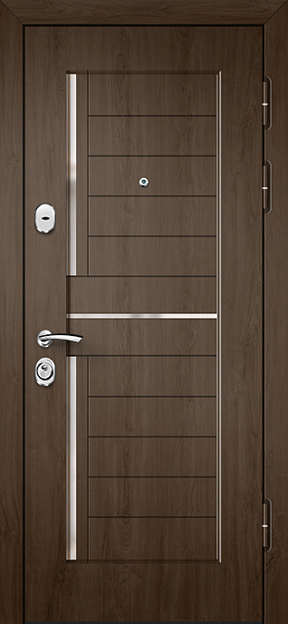Глубокий оттенок венге всегда выглядит благородно и современно, а декоративная панель придаёт полотну завершённый стильный образ. Дверь МДФ цвета венге с внешней декоративной панелью №538 подходит для установки как в частных домах, так и в квартирах или офисах, где ценят сочетание надёжности и эстетики. Плиты МДФ отличаются прочностью, стойкостью к мелким механическим повреждениям и долго сохраняют первоначальный вид без потери насыщенности цвета. Конструкция выполнена на основе стального каркаса с листом металла толщиной 2 мм и рёбрами жёсткости, что обеспечивает высокий уровень прочности. Два контура уплотнения повышают комфорт эксплуатации, защищая от сквозняков. Дополнительно дверь можно оснастить шумо- и теплоизоляцией, зеркалом, стеклопакетом или коваными элементами, сделав её не только практичной, но и индивидуальной деталью интерьера. Дверь МДФ цвета венге с внешней декоративной панелью №538 от производителя: быстрое изготовление и монтаж в Истре, индивидуальные размеры, широкий выбор материалов и фурнитуры, официальная гарантия до 10 лет.