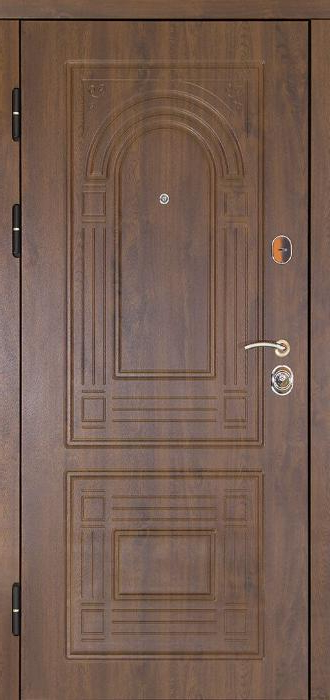 Механизм замков в двери также заслуживает внимания: верхний замок "Просам" и нижний "Мосрентген" с тремя ригелями каждого обеспечивают надежную защиту. Дверь оснащена резиновыми уплотнителями по два контура, что гарантирует отличную герметичность и защиту от пыли и влаги. Несмотря на отсутствие терморазрыва, дверь сохраняет свои эксплуатационные характеристики на долгие годы. Возможность комбинировать отделку и устанавливать дополнительные элементы, такие как зеркало, стеклопакет и кованые украшения, делает эту модель универсальной и подходящей для различных интерьеров.