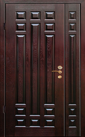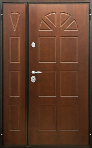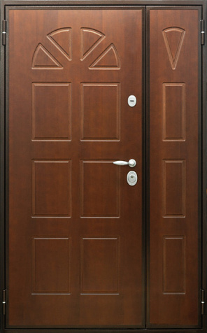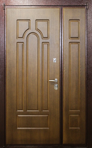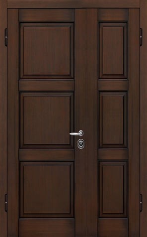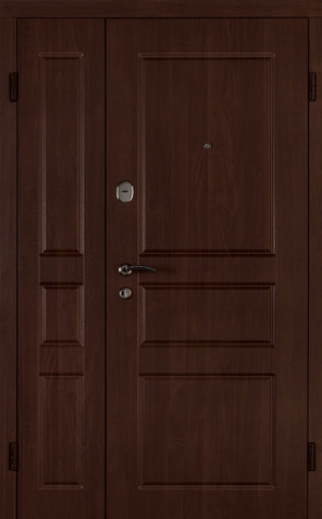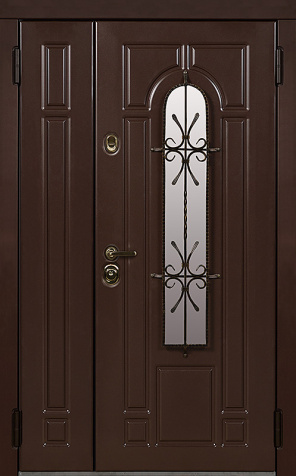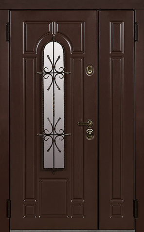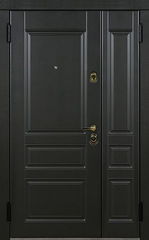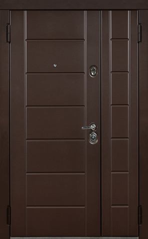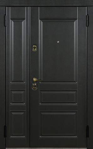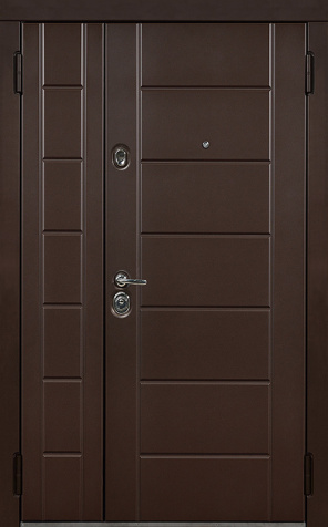 Базовая схема — активная и пассивная створки в усиленной коробке. Пассивная фиксируется верхним и нижним ригелями или скрытыми шпингалетами; это даёт жёсткость и исключает самопроизвольное открывание. Замковая группа подбирается под сценарии: основной замок + вспомогательный, ручки, броненакладки, глазок или видеоглазок.