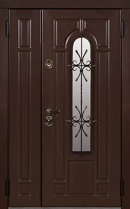Эта металлическая двухстворчатая дверь с арочным стеклопакетом №15 представляет собой идеальный баланс между эстетикой и прочностью. Арочное стекло добавляет в её дизайн утончённость, а ковка в декоре придаёт изысканный, но в то же время крепкий и надёжный вид. Плита МДФ, используемая как для внешней, так и для внутренней отделки, не только сохраняет прекрасный внешний вид, но и устойчива к механическим повреждениям. Металлическая двухстворчатая дверь с арочным стеклопакетом №15 от производителя: быстрое изготовление и монтаж в Истре, индивидуальные размеры, широкий выбор материалов и фурнитуры, официальная гарантия до 10 лет.