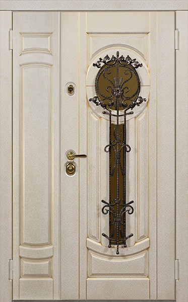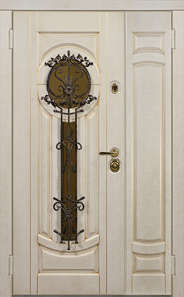Двухстворчатая парадная дверь с ковкой и стеклом белая №30 — это сочетание красоты и надёжности. Конструкция из профильной трубы 50х25 мм и металлического листа толщиной 2 мм обеспечивает долговечность и стойкость к внешним воздействиям. Элементы ковки придают двери изысканный вид, а стеклопакет позволяет создать атмосферу лёгкости и прозрачности. Внешняя и внутренняя отделка выполнены из плиты МДФ, что делает дверь не только привлекательной, но и устойчивой к механическим повреждениям. Для дополнительной герметичности используются уплотнители с двумя контурами, а блокираторы обеспечат безопасность. Вариативность размеров и возможность добавления дополнительных опций, таких как шумо- и теплоизоляция, делают эту модель универсальной для установки в любом интерьере. Двухстворчатая парадная дверь с ковкой и стеклом белая №30 от производителя: быстрое изготовление и монтаж в Истре, индивидуальные размеры, широкий выбор материалов и фурнитуры, официальная гарантия до 10 лет.