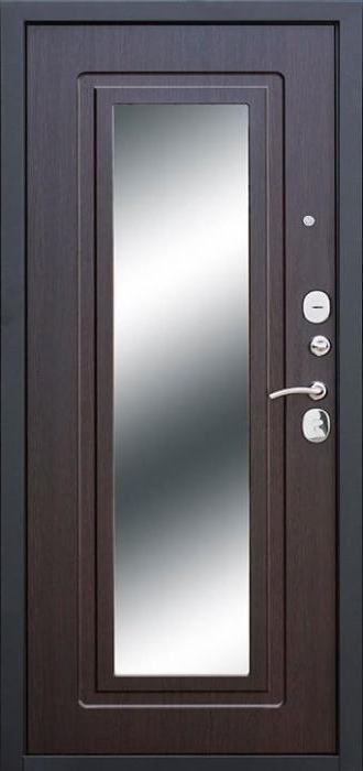 Дверь наружная с покрытием под дерево №3 — это стильное и надежное решение для вашего частного дома, квартиры или офиса. Конструкция двери включает прочный каркас из профильной трубы и металл толщиной 2 мм, что гарантирует долговечность и защиту от внешних воздействий. Внешняя и внутренняя отделка выполнены из плиты МДФ, что придает двери эстетичный вид и устойчивость к механическим повреждениям. Декор в виде зеркала подчеркивает её элегантность, а блокираторы и высококачественные замки (Просам и Мосрентген) обеспечивают высокий уровень безопасности. Дверь также оснащена двумя контурами уплотнения, что способствует хорошей изоляции. Возможность добавить стеклопакет, кованые элементы или видеодомофон делает этот продукт еще более универсальным и практичным для различных типов объектов. Дверь наружная с покрытием под дерево №3 от производителя: быстрое изготовление и монтаж в Истре, индивидуальные размеры, широкий выбор материалов и фурнитуры, официальная гарантия до 10 лет.