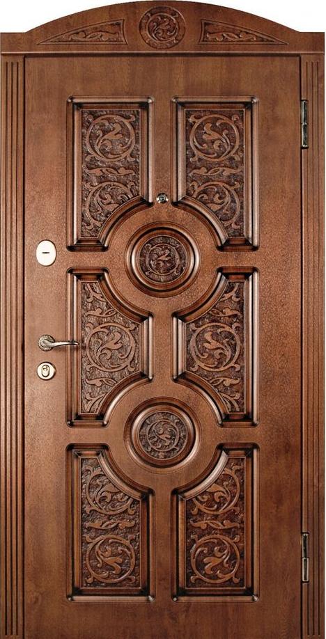 Эксклюзивная высокая входная дверь с железным отбойником №36