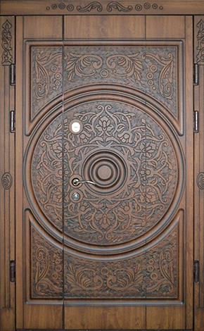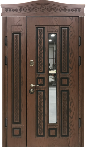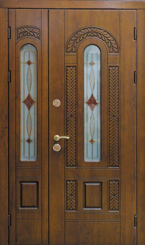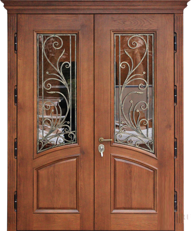 Входная металлическая дверь для частного дома со стеклом и ковкой №29