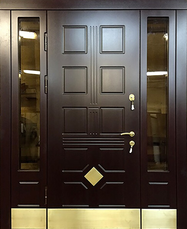 Натуральное дерево в отделке придаёт конструкции основательность и благородный внешний вид, а металлический каркас с листом стали толщиной 2 мм и системой ребер жёсткости обеспечивает надёжную защиту и долговечность. Входная дверь с остеклением №70 особенно востребована в частных домах и коттеджах, где важна не только безопасность, но и эстетика. Стеклянные элементы делают полотно визуально легче и наполняют прихожую естественным светом, при этом оставаясь частью прочной конструкции. Для комфорта предусмотрены два контура уплотнения, а терморазрыв в коробке и полотне защищает от промерзания и сохраняет тепло даже в сильные морозы. Итальянские замки Cisa цилиндрового и сувальдного типа дополняют высокий уровень безопасности. Возможность добавить кованые элементы, зеркало или стеклопакет позволяет адаптировать модель под архитектуру дома, подчёркивая индивидуальность и вкус владельцев. Входная дверь с остеклением №70 от производителя: быстрое изготовление и монтаж в Истре, индивидуальные размеры, широкий выбор материалов и фурнитуры, официальная гарантия до 10 лет.