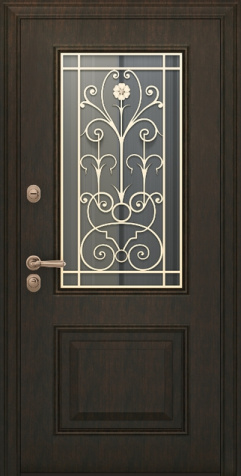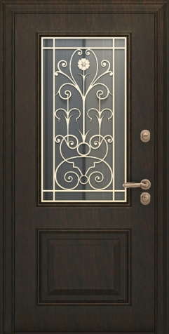 Дверь металлическая со стеклом и ковкой №7
