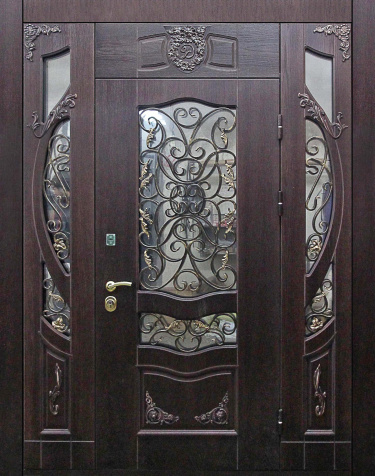 Кованая дверь под старину для частного дома №38 — это идеальное решение для тех, кто ценит уникальный стиль и надёжность. Изготовленная из массива дуба как снаружи, так и внутри, она привнесёт атмосферу уюта и элегантности в ваш дом или коттедж. Эта дверь с элементами ковки, выполненная на основе прочной профильной трубы, представляет собой сочетание классического дизайна и современной функциональности. Она прекрасно подходит для установки в парадной зоне, создавая неповторимый акцент в интерьере. С механической точки зрения дверь оснащена двумя замками Cisa с четырьмя и пятью ригелями, обеспечивающими надёжную защиту. Стойкость к внешним воздействиям и долговечность отделки гарантируют сохранение первоначального вида в течение долгого времени. Кованая дверь под старину для частного дома №38 от производителя: быстрое изготовление и монтаж в Истре, индивидуальные размеры, широкий выбор материалов и фурнитуры, официальная гарантия до 10 лет.