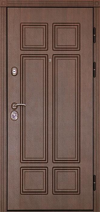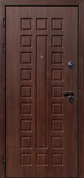 Дверь металлическая входная уличная утепленная №7 — это практичное решение для установки в частном доме, квартире или офисе, где важны защита и сохранение тепла. С обеих сторон конструкция облицована панелями МДФ с ПВХ-покрытием, которое стойко переносит перепады температуры и не теряет внешний вид даже при активной эксплуатации. В основе лежит каркас из профильных труб, усиленный стальным листом толщиной 2 мм и ребрами жесткости, что делает дверь прочной и устойчивой к внешним нагрузкам. Два контура резинового уплотнителя защищают от проникновения пыли и сквозняков. Особенность модели — наличие терморазрыва в коробке и полотне: это предотвращает промерзание металла и образование конденсата, сохраняя уют и тепло в помещении в холодный сезон. Дверь №7 сочетает надежность, современный внешний вид и функциональность, позволяя использовать её как в уличных условиях, так и внутри зданий. Дверь металлическая входная уличная утепленная №7 от производителя: быстрое изготовление и монтаж в Истре, индивидуальные размеры, широкий выбор материалов и фурнитуры, официальная гарантия до 10 лет.